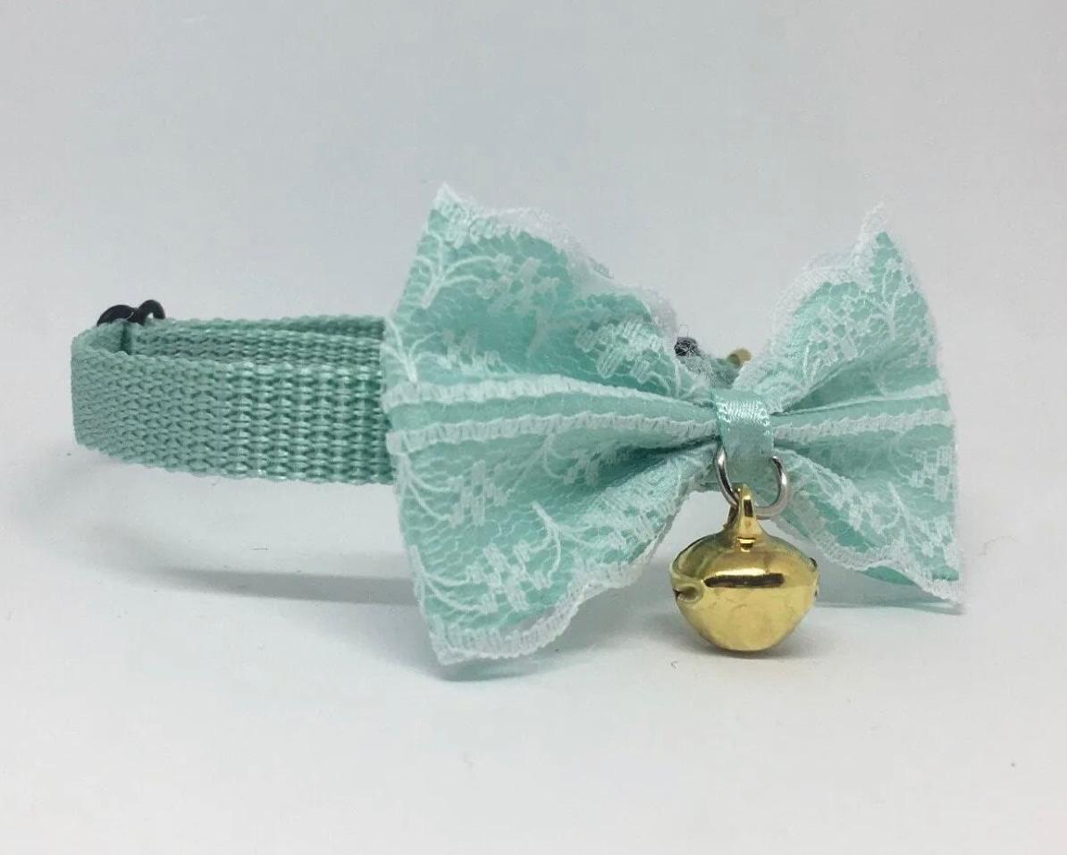 Collier à papillon en Dentelle pour chat – Vert pâle