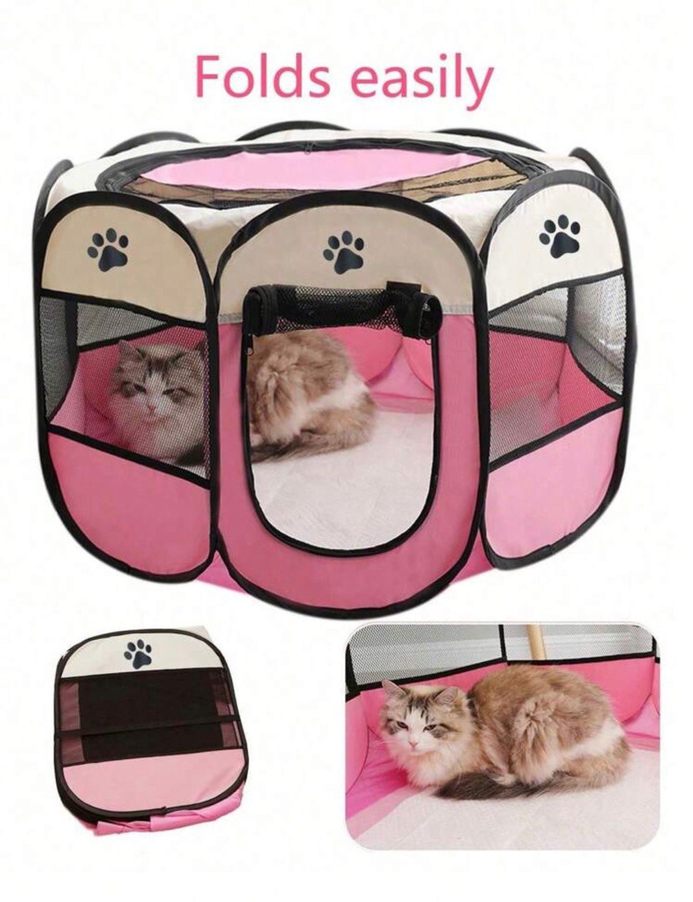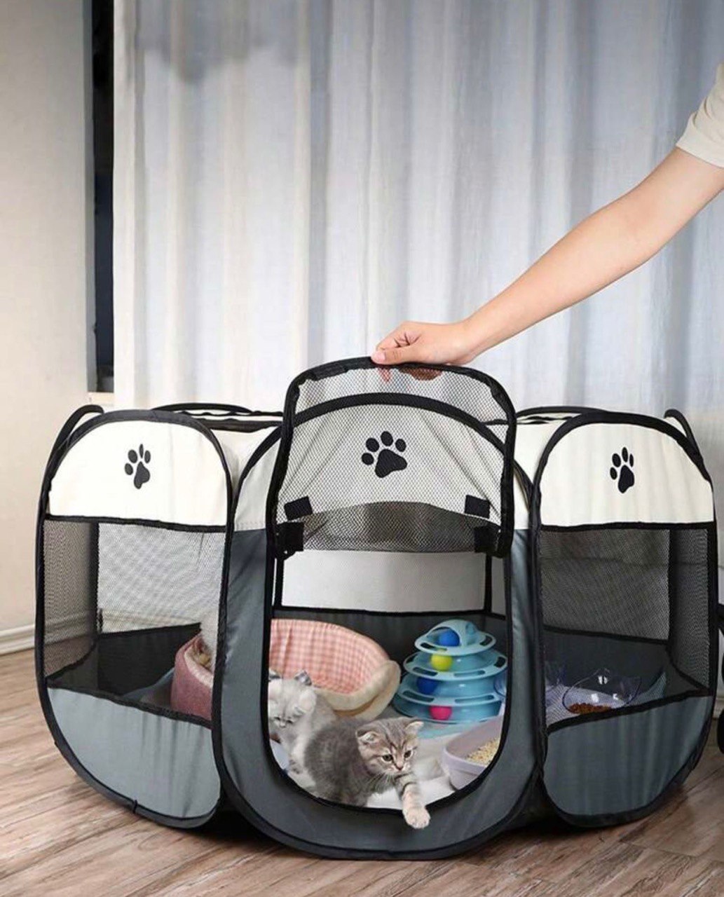 Parc de jeu en Tissu pour Chat et Petit Chien – Rose et Gris