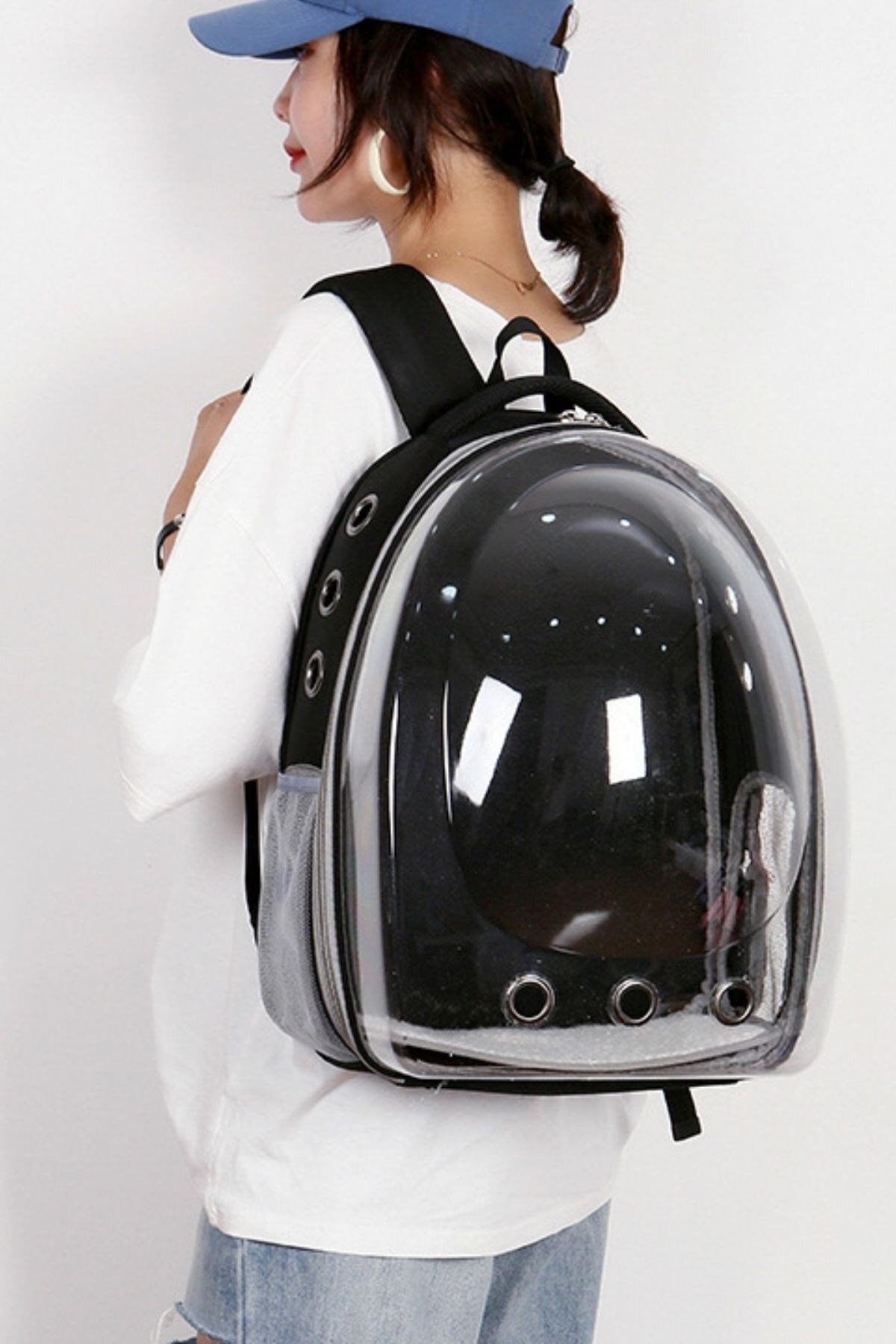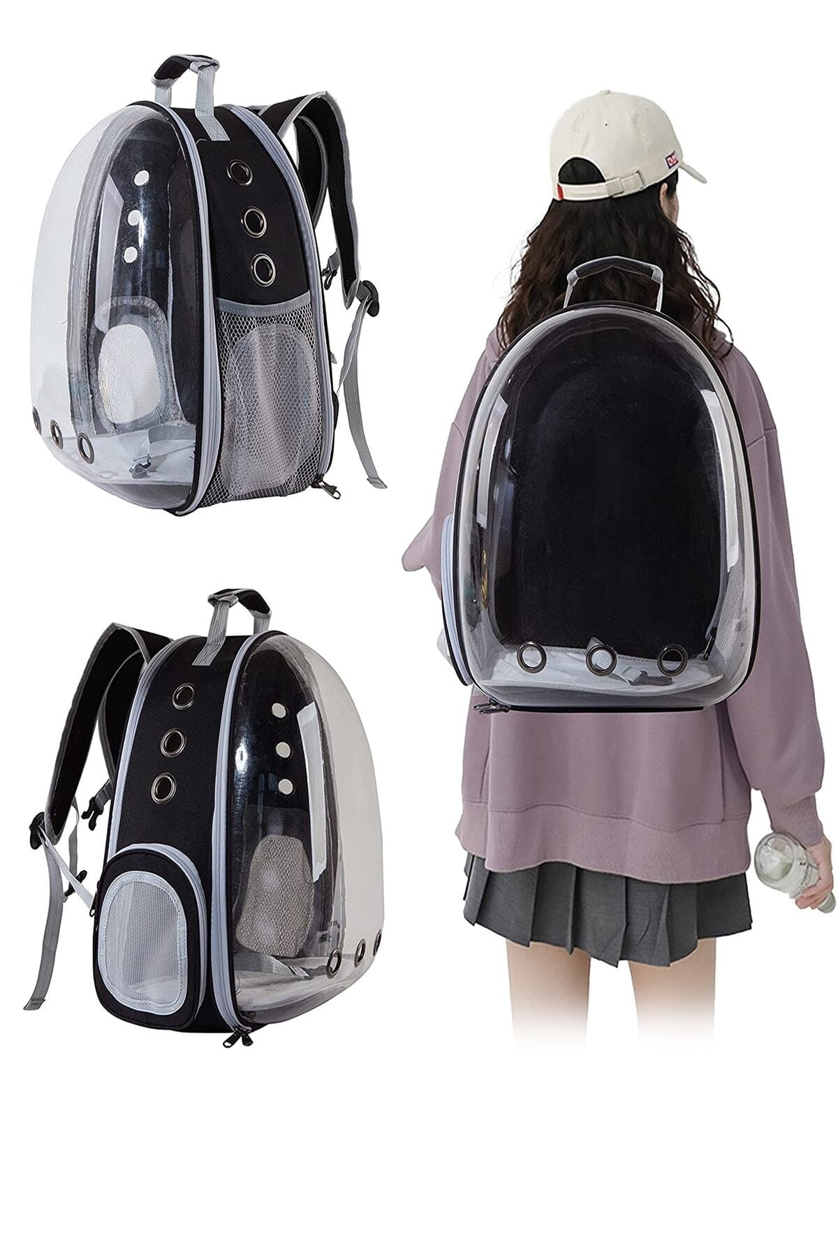 sac de transport pour chat et petit chien main noire et sac à dos 6 canaux d’air 2 poches en filet sac de transport pour chat sac de transport pour chat